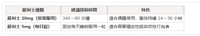 ✔ 犀利士提前 30~60 分鐘吃